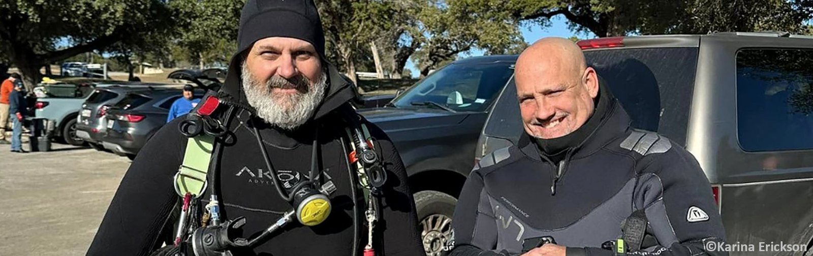 Veteran and First Responder scuba divers helping each other survive the surface intervals.